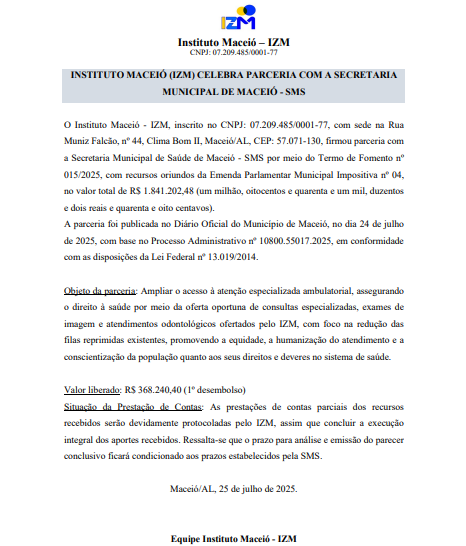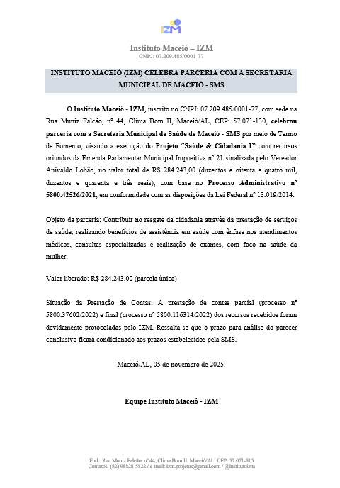O Instituto IZM é uma organização comunitária que oferece atendimentos gratuitos em Maceió e região.